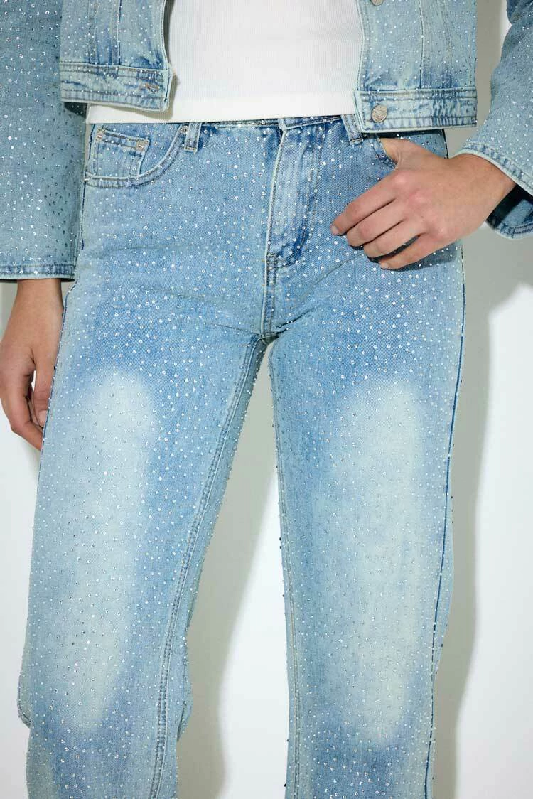 No esperes más para sumar esta pieza única y sofisticada a tu colección. ¡Elegí el Pantalón Recto Denim con Hotfix y destacate con elegancia!